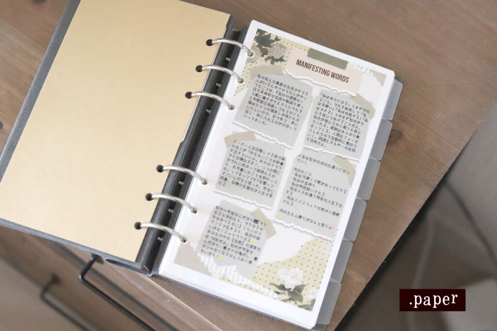 これまでも手帳は使っていましたが、市販の手帳では自分の本当に必要なページが足りなかったり、逆に使わないページがあったり。そこで思い切って、バイブルサイズのシステム手帳に切り替え、自分でリフィルを作ることにしたんです。
