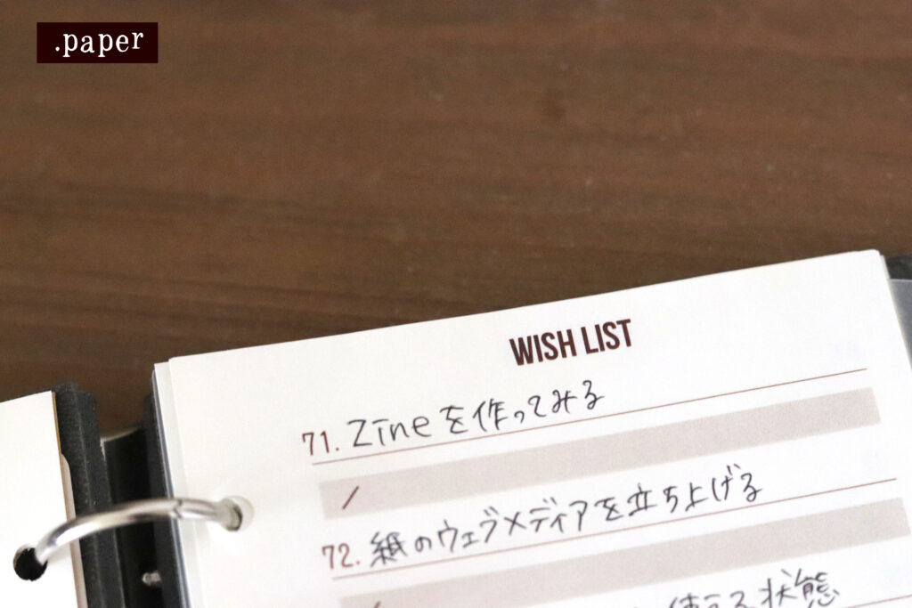 Wish Listとも言われて100個書き上げて、毎年見直しをしています(今年はまだ70個程度しかかけていませんが笑)リフィルは自作です。