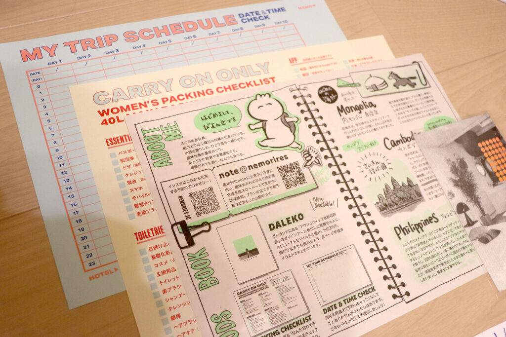 旅行計画を立てる時と、持っていく荷物をまとめたペーパーとポストカードを購入。